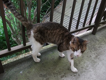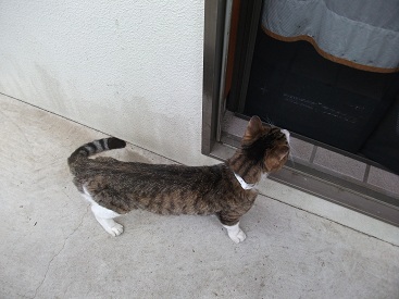 どうも、2週間ぶりのブログ更新です。全国・全世界のめめファンの皆さま、大変長らくお待たせ致しました!?今日は、最近我が家に足繁く来ているお客さんがいるので、紹介します。この方です。ごめんくださ~い。こちらは、私と同じアパートに住む、ネコさんです!?御年17歳のおじいちゃんネコです!?ウチに来ては、エサを要求して我が家の玄関前で寛いでいます。最初、めめはおじいちゃんに喧嘩を売っていましたが、おじいちゃんを見ても、最近ではジッとしています。やっぱり、亀の甲より年の功だね・・・