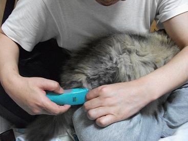 昨日の夜、シャワーの時にできためめの毛玉を取りました。今回、はじめてバリカンを使いましたが、その際皮膚が見え、赤くなってしまいました(汗)毛玉を切った後、めめが皮膚が見えた部分を舐め続けていて、少し心配になったので、今日めめを病院に連れて行きました!?先生に診て頂いたところ、傷が付いているわけではないので、大丈夫だと言うことで、安心しました(ホッ)チンチクリンになってしまいましたが、まだ毛玉が残っています(トホホ)毛玉いやだよぉ~