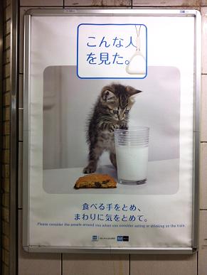 先週の土曜日、おとんたんと一緒に中野区内にあるイタリアンレストランに、行ってきました!?その帰りに、東京メトロのマナーポスターを発見しました。今回は・・・『食べる手をとめ、まわりに気をとめて』車内で飲食する人を、子猫で表現してあります。やっぱり、子猫は可愛いですね~!?めめの子猫の頃は、どんな子だったのでしょうね・・・こんなんですっ(笑)アハハ、冗談です・・・