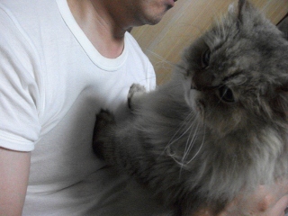 およっ、めめとおとんたんがケンカ??違います。昨日、おとんたんが久しぶりに、めめのブラッシングをしたのです!?めめたん、かなり不機嫌そうです。シャッシャッ・・・このあと・・・いつもなら、おとんたんの膝に乗ってくるめめが、一切寄って来ませんでした↓それどころか、おとんたんがめめに手を差し伸べても、ソッポを向いていました(悲)昨夜のめめは、つれない子でした。