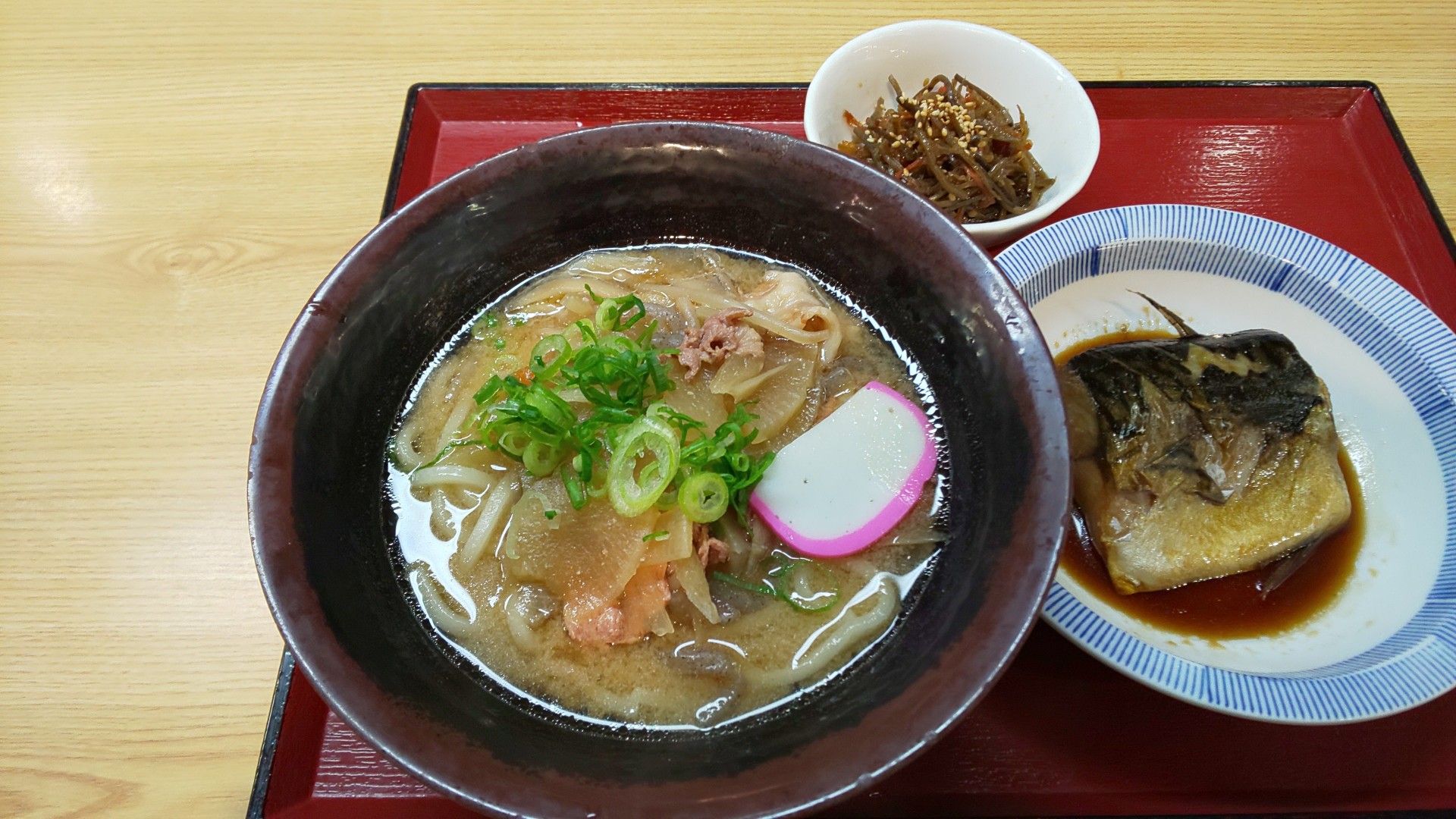 ○○食堂と名乗るまいどおおきに食堂というセルフの大衆食堂が各地にある。 昨日の夜は、丸亀の浜街道丸亀食堂。豚汁うどん297円+煮さば+きんぴら110円。 細い麺。豚汁は美味しい。 他に、かけうどんが210円、肉うどん・カレーうどん297円。うどんあります店。 コスパを考えるとうどんにライスを付けると高くなる。