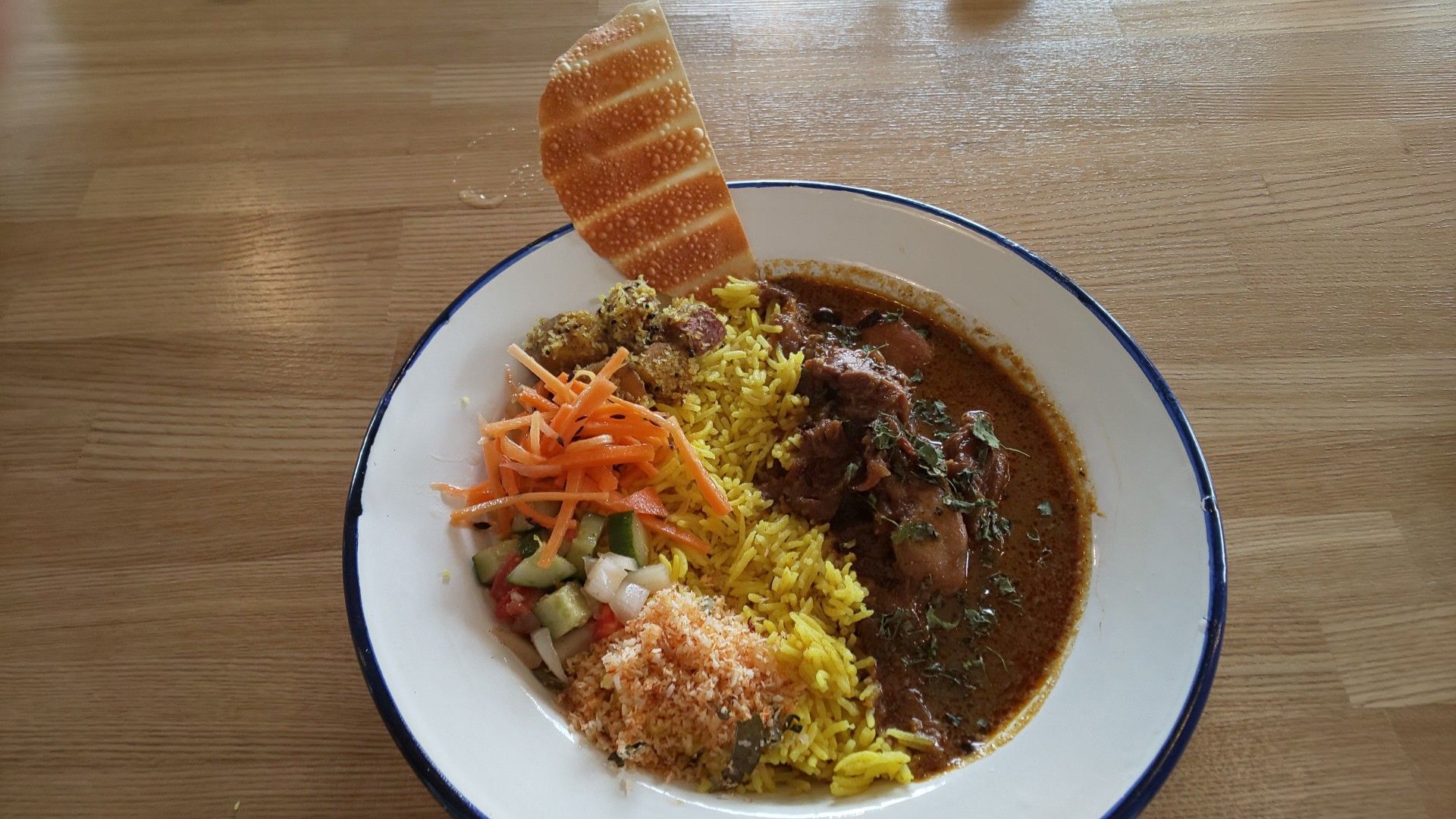昨日の昼は、観音寺の県道沿いの倉庫を利用したカフェSOKO。美容室が併設されている。ランチメニューとしてはカレーが主かな。週替カレーが売切れてたので、定番のスリランカ風チキンカレー950円(税別)。 黄色いライスに辛めのカレー。量が多ければ言うことなしだが(笑)。 カレーを食べると飲み物200円引きで普通のコーヒー200円(税別)で。