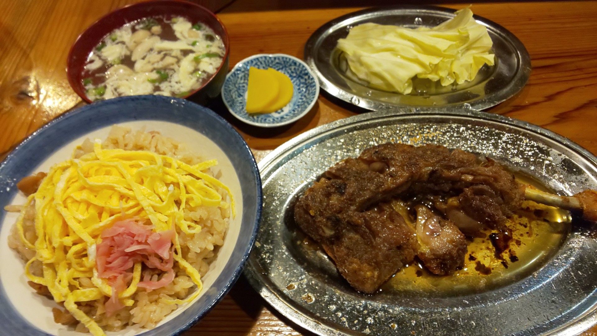 昨日の夜は、郡家の県道沿いの骨付鳥ぐんげ屋。おっちゃんとおばちゃんでやってる。骨付鳥おやどり1067円+とりめし(スープ付)473円。 やはり鳥は親に限る。とりめしも量多め。これはいい店やわ。 今では貴重な全席喫煙席で居酒屋使いの客も。
