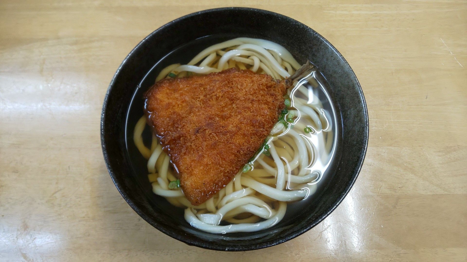 昨日の昼は、満濃町の川中。昔の趣きのある店からちょっと移動。一応一般店。かけ大320円+アジフライ100円。 太かったイメージがあるが普通に細い麺。元々は川中のそばとして有名な店だった。