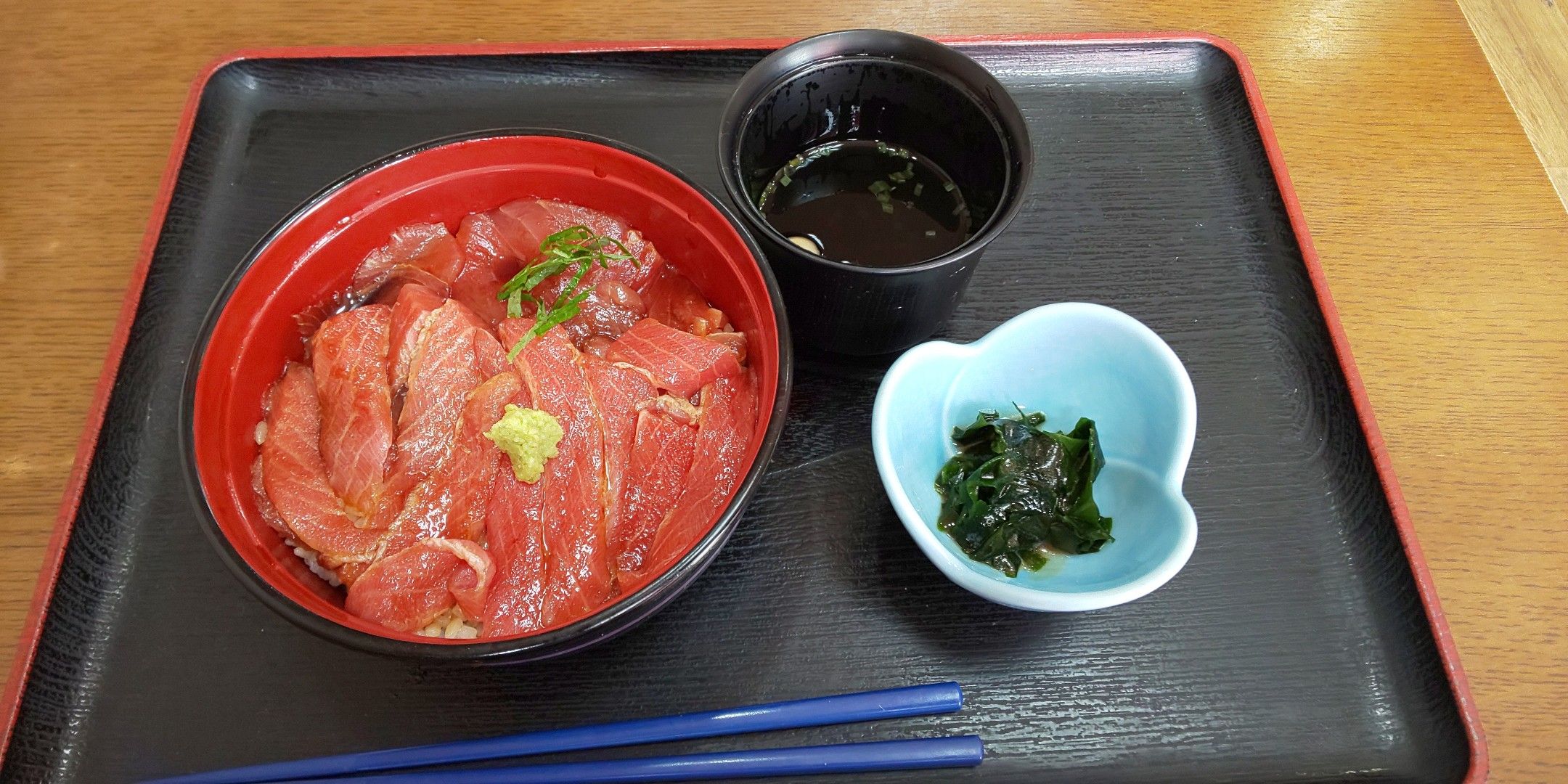 昨日の昼は、詫間町、目指した店かが休みだったので、浜街道を探検中、居酒屋若だんなのサインの点滅発見。メニューを見て高い!名物丼のハーフアンドハーフのうち大トロ・赤身づけ丼2090円。 丼をマグロが覆い尽くしている。赤身がメバチ、大トロがクロとの説明。大トロはとろけるような味。でも赤身が好きかなぁ。 メニューをよく見ると、とりから揚げ定食825円の他にも千円以下が数品あった(笑)。 お盆にのった姿がショボイのでそこを豪華にすればもっと人気が出るだろう。
