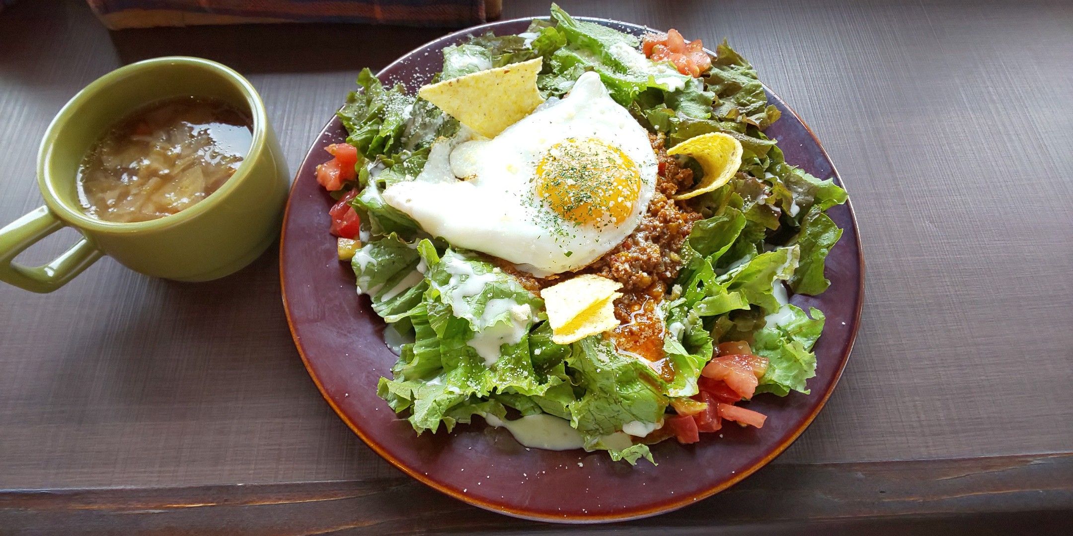昨日の昼は、詫間町、喫茶店の表示を見つけ入ってみると食べ物なし。気を取り直して川の横にあるカフェルポ。パンランチ、チキン南蛮が売り切れで、タコライス900円。 パン屋なのでパンランチが人気だけど、私はライス派。久しぶりのタコライス、スパイシーで美味しい。 賃貸契約終了で残念ながら閉店が決まってる。