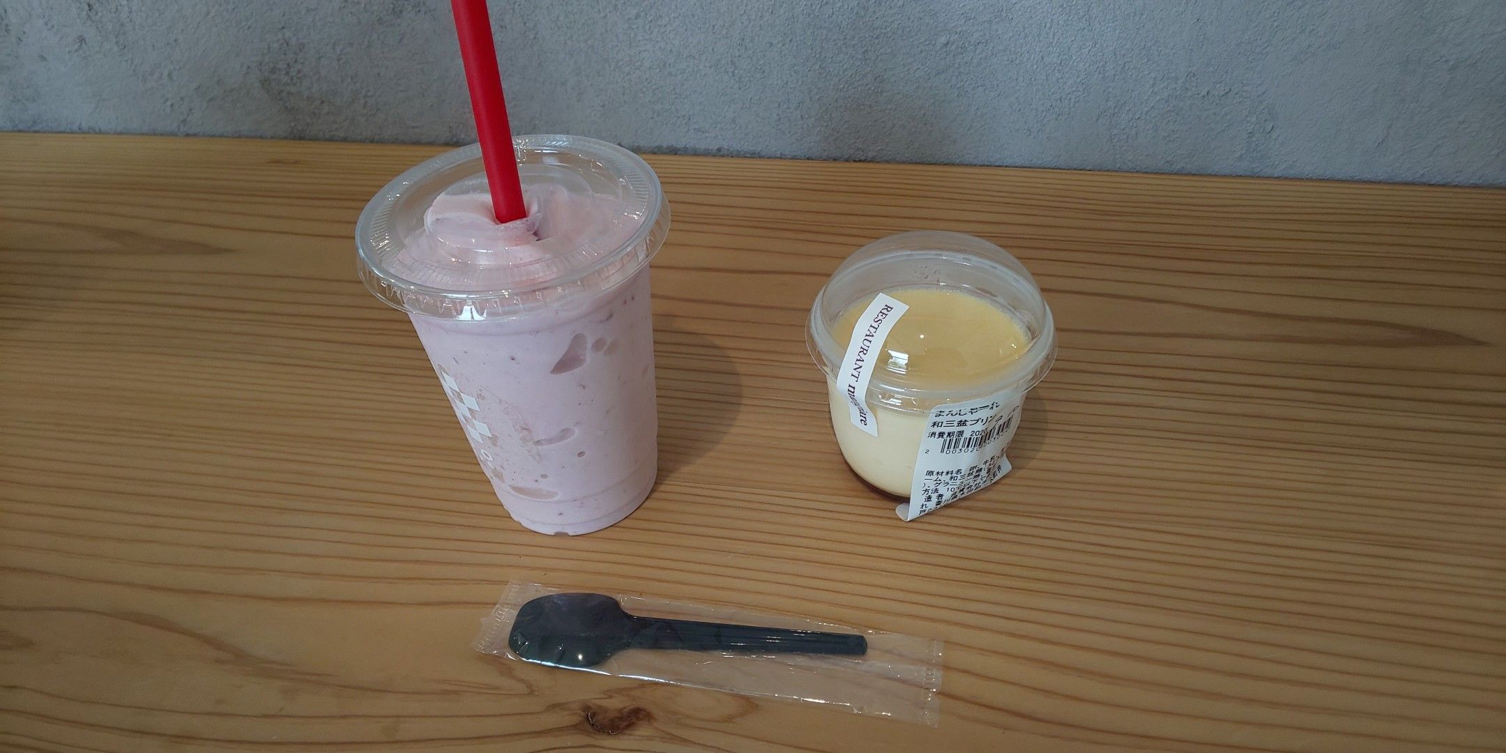 昨日は、昼から休み。4時頃三木町のIDO MALLに着く。和食と洋食はまだ休憩時間、ラーメンという気分でもない。カフェでイチゴシェーク600円、マルシェでまんじゃーれの和三盆プリン324円を買い、食べ物の提供が休みでイートインスペースとなってる古今惣菜で休む。 どちらも濃厚な味。 でも田園地帯にあるこのモール、モールと呼ぶのは小さいし…違和感があるモール。