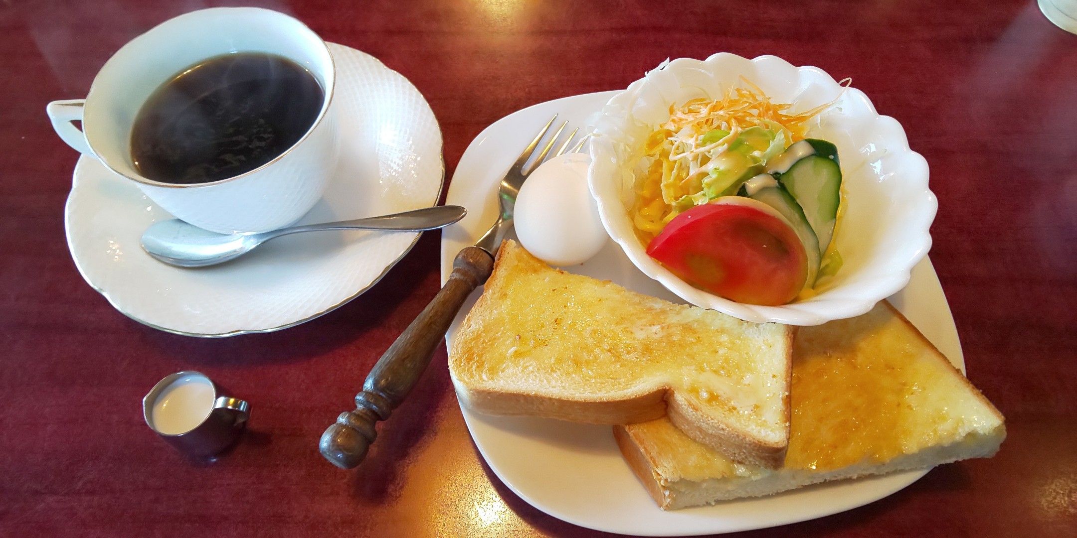 昨日の朝は、多度津の県道沿いで黄色灯が回転してた喫茶店風の建物。建設機械会社か何かの一角で事務所?かも。恐る恐る覗いたドアの向こうは喫茶。モーニングはトーストかサンドウィッチからトースト410円を選択。 トーストとゆで卵の最小限モーニング。店の名前はネットで調べたけど合ってるかなぁ(笑)。