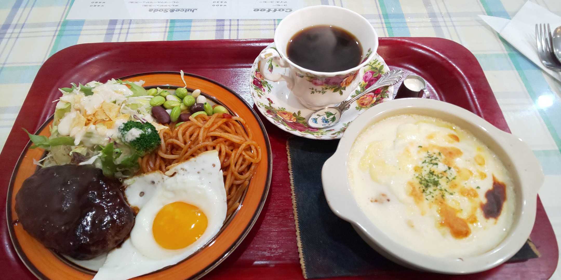 昨日の昼は、善通寺の街中の「tea room」「手作りケーキと料理」の表示があるBOUQUET。ドリアセット1100円。 ドリアは半チャンくらいの量と言われたけどそこそこある。スパゲッティは付け合せとしては多め。 高齢のおじさんとおばさんがやってる時代を経たレトロな洋食屋と言ったところ。