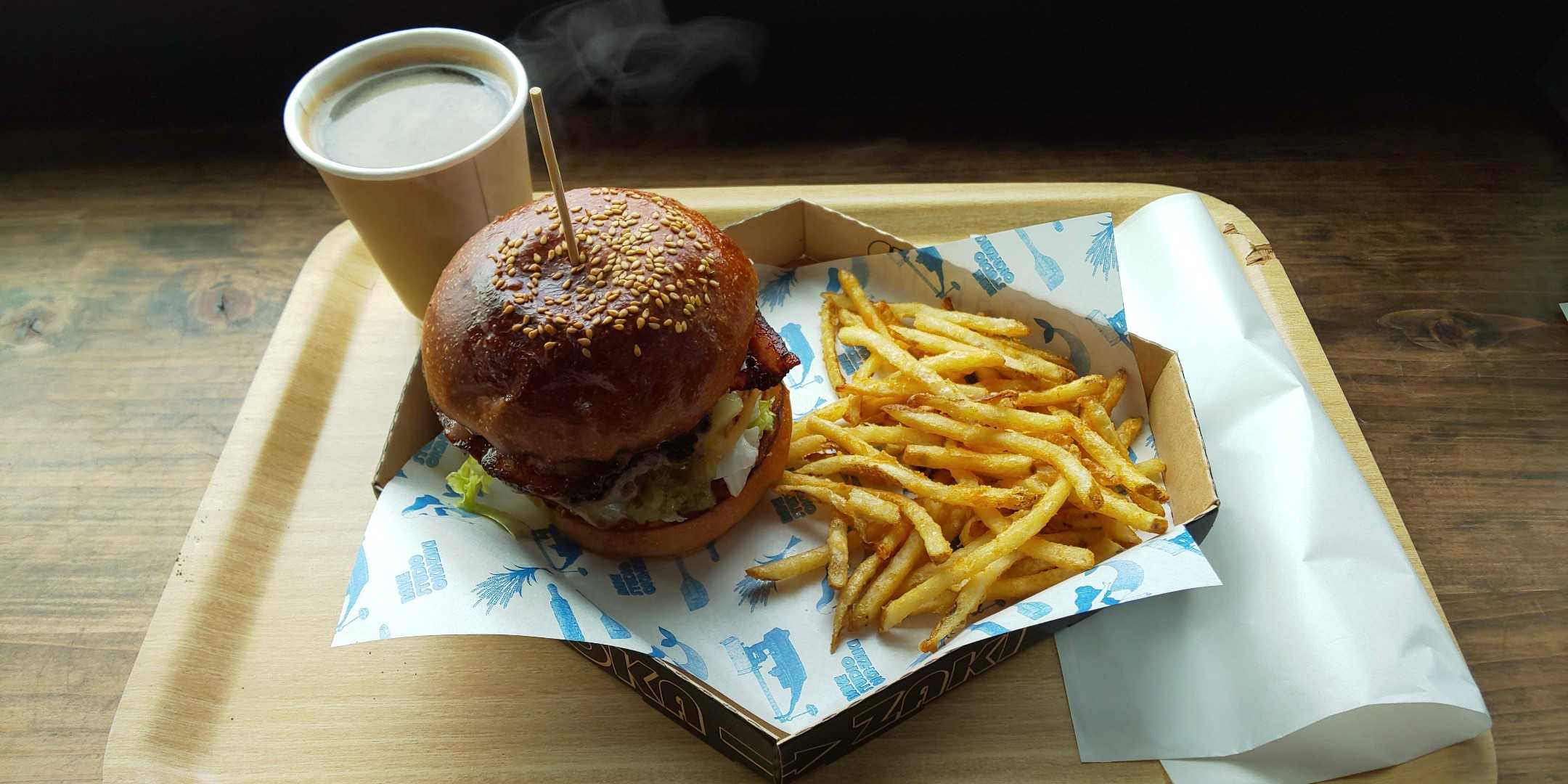 昨日の昼は、仁尾町の父母ヶ浜の岡崎製パン所でハンバーガー。お勧めを聞くと標準より200円高いベーコンチーズバーガー1100円、+250円でセットドリンク。 巨大なバーガーが登場。食べ応え満点。もれなく付いてるポテトも美味しい。 目の前は砂浜〜。平日で店も空いてたのでゆったりと。砂浜では20人程度が散策している。曇ってる平日なのに人が来てることが驚き。