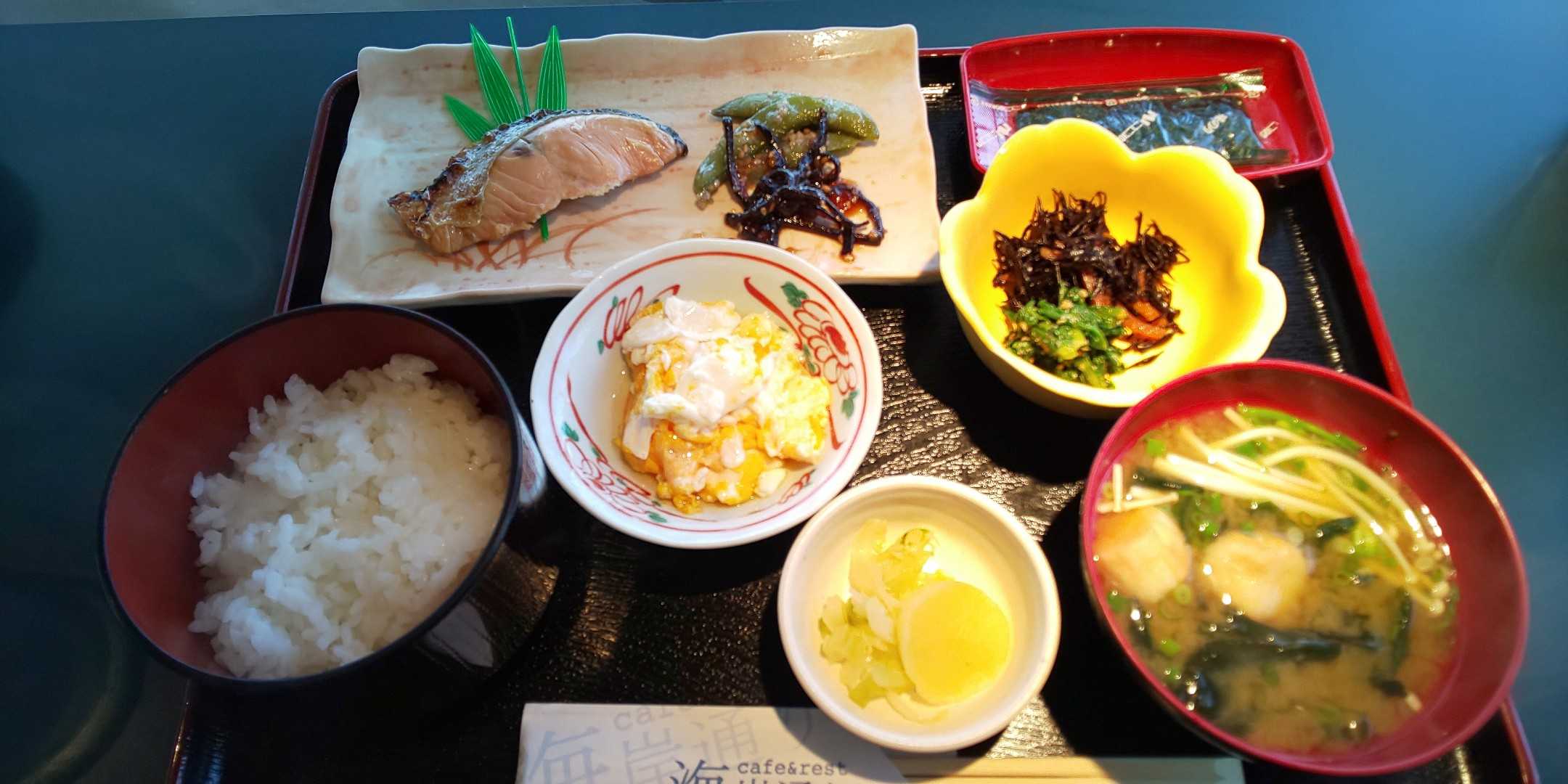 昨日の朝は、多度津町のカフェ海岸通り。和・洋のモーニング700円(飲み物付)から洋を選択。 鮭と海苔の代わりにトンカツなら立派な昼食だなぁ(笑)。 店・県道・予讃線・瀬戸内海という立地。瀬戸内海を背景に列車が見られる。 多度津町の喫茶店では珍しい喫煙不可の店。