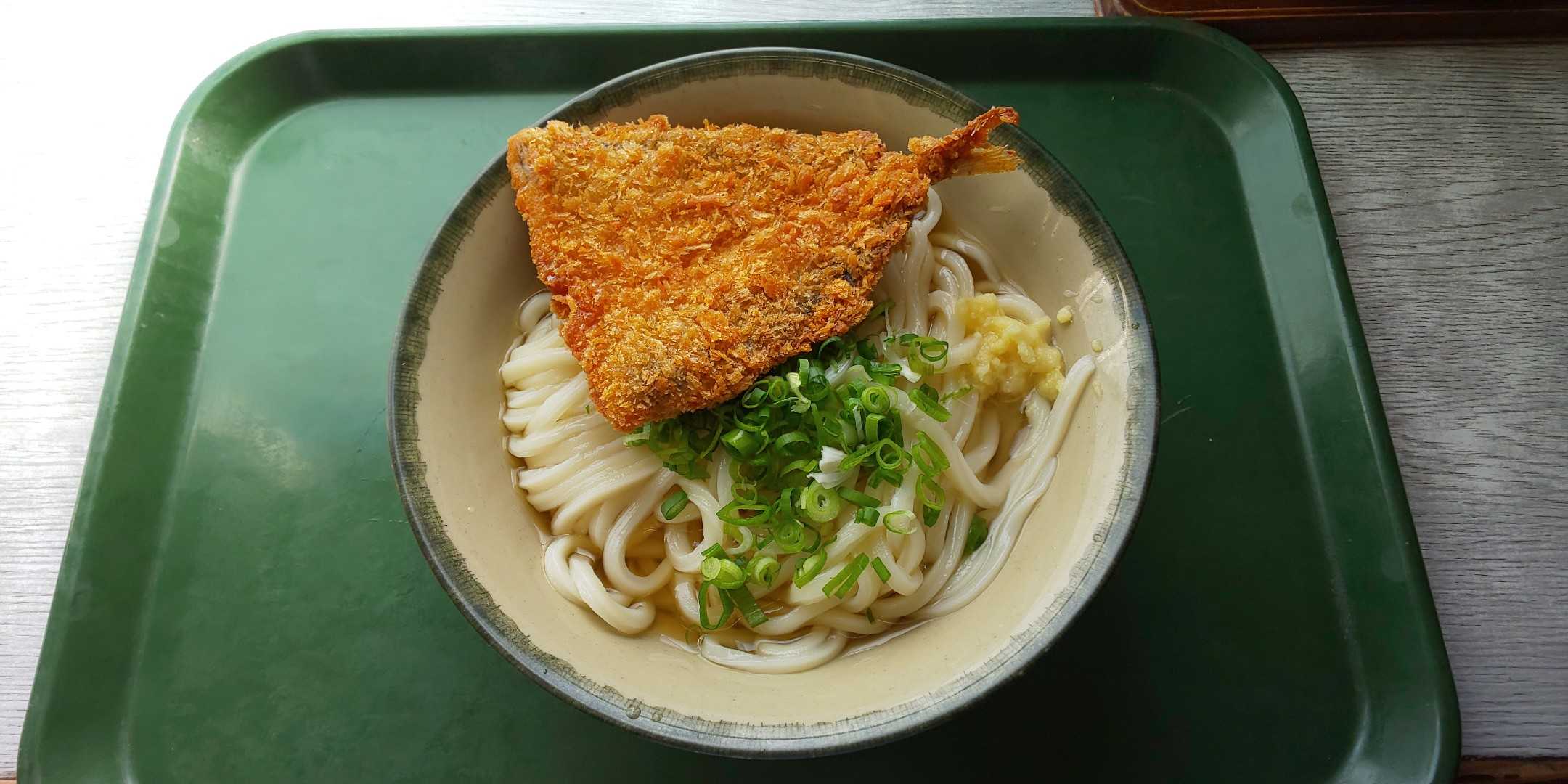 昨日の昼は高松の円座小学校そばの製麺所付属の優作。かけ中(2玉)230円+アジフライ120円。 11時半頃、ちょっと待って出来たてが。かなり細めの伸びる麺。玉数に応じた丼を選びうどんかそばを選択する方式。 ご近所さんが家族や一人で利用する店。