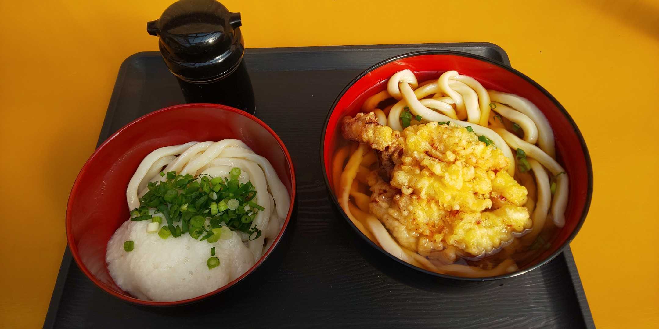 昨日は、綾歌町の道の駅滝宮うどん会館のリニューアルオープン。第一弾としてうどん店とレストランと土産物ショップが開店した。 セレモニーを横目にセルフのさぬきうどんの駅綾川の行列らしき場所に並ぶ。10時にオープン記念のマスクをもらい入店。かけ大340円+とり天150円。 中太の硬めの伸びない麺。 レジを済ませたところで、さぬどんから、半なまうどんをもらった。 そばもあるけど、次の展開を考え我慢した…(続く)。