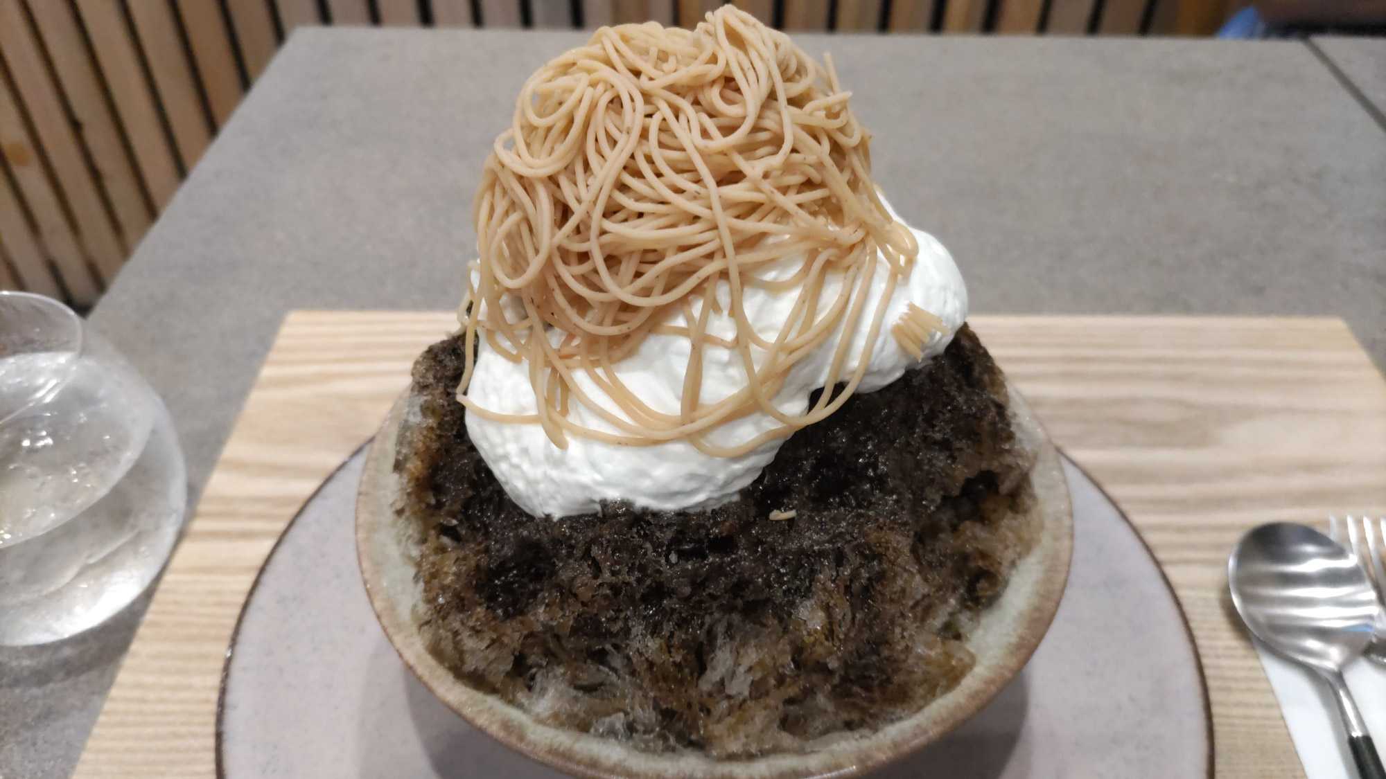 昨日の午後は、高松市の商店街にある和栗モンブラン専門店 栗歩。メニューを眺めて…、壁に貼ってあった一番安い和栗のかき氷(ほうじ茶)1480円にする。安い分栗の量は少なめ。暑い日にはちょうど良いとやせ我慢(笑)。飲物はすべてに付いてくるけど高いなぁ〜。おしゃれな滞在型の店ではなく、栗を目の前で絞り出して、かけてくれる、という演出重視の高級な店。値段が値段のためリピーターの獲得は難しいようで、ぼちぼち来る程度で店は閑散としてた。