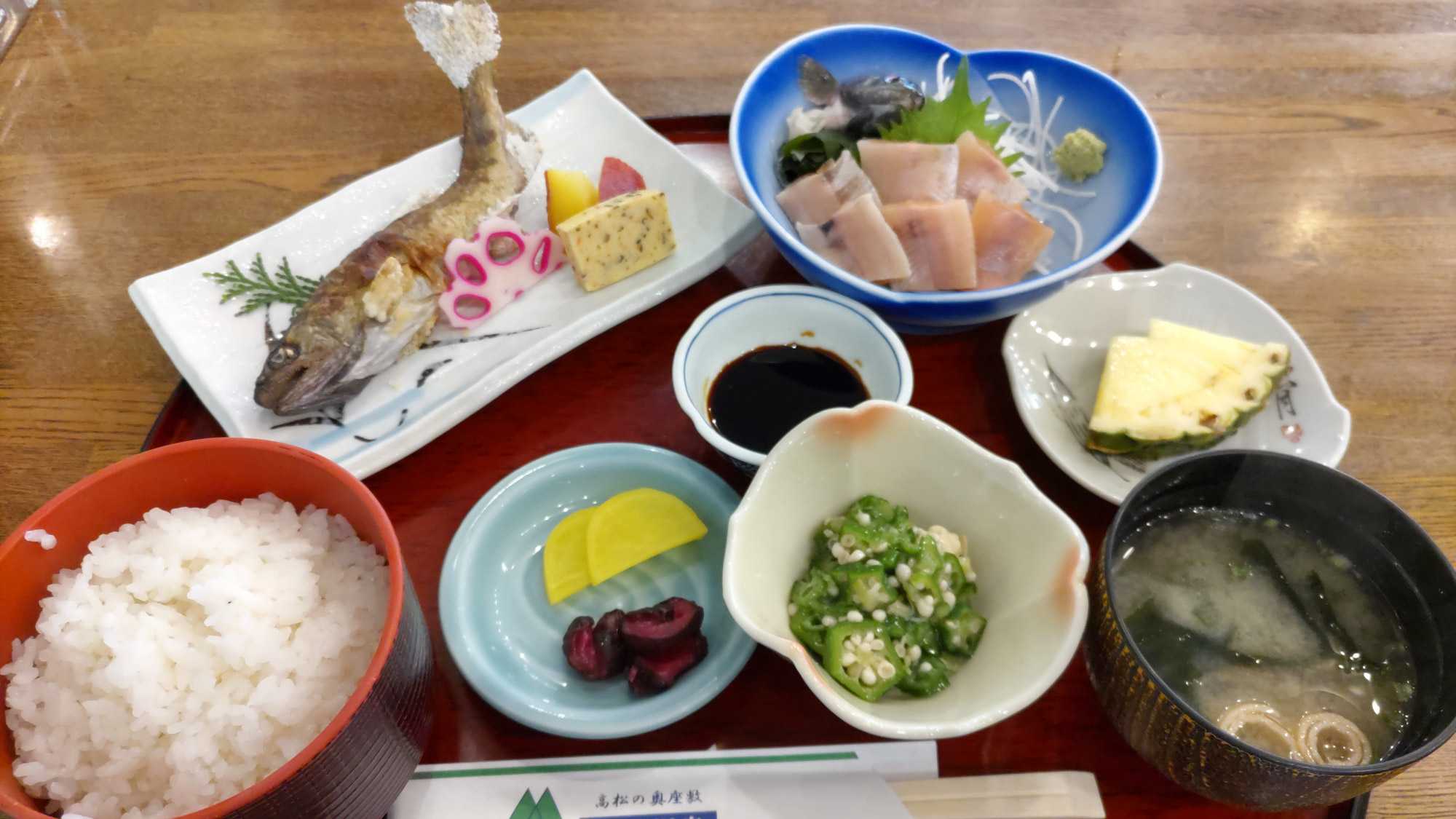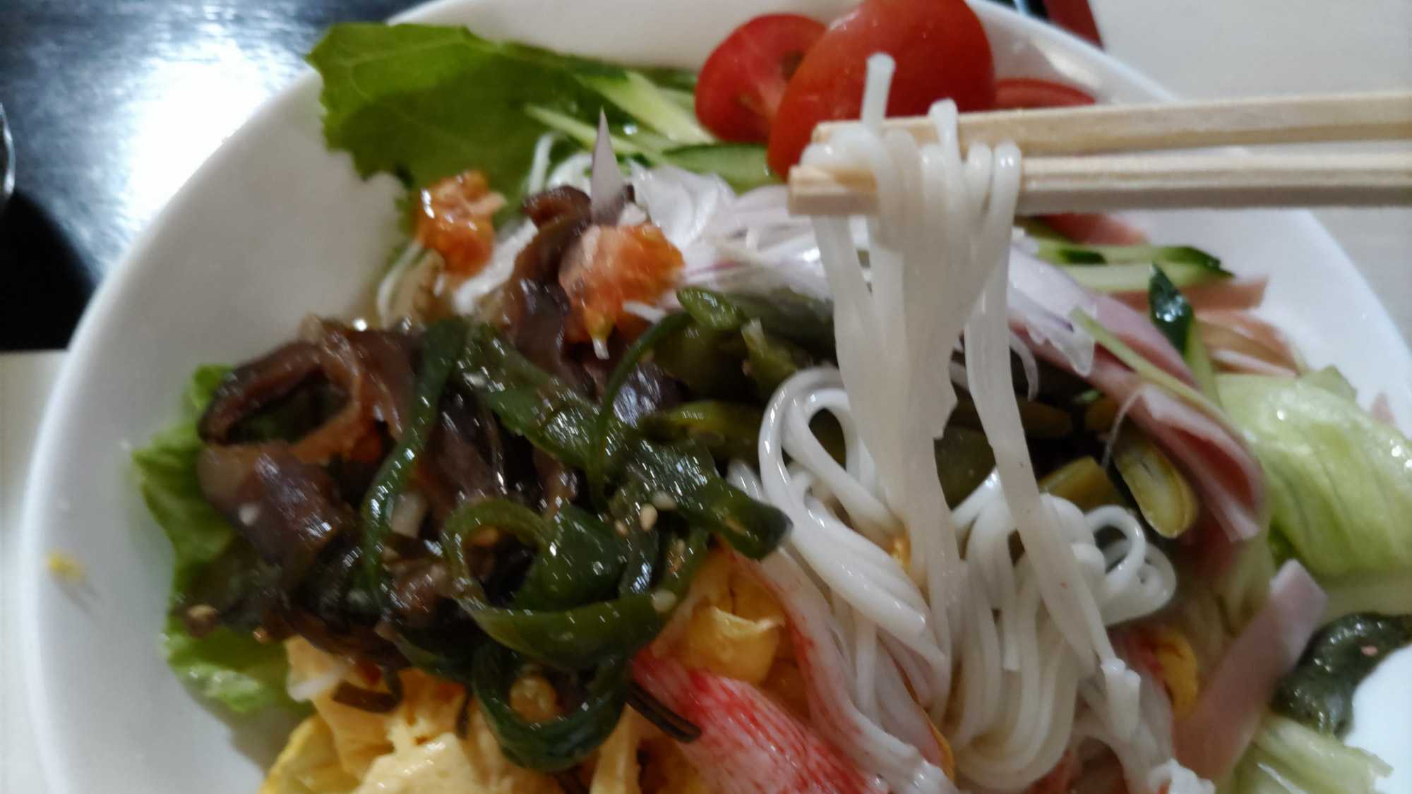 昨日の昼は、多度津町の県道から入ったお好み焼き山ちゃん。美術館との看板もあるし、喫茶店ともある。本日のサービスタイムランチの冷し素麺とおむすびの定食650円。素麺を冷し中華風にしてるけど、素麺では麺が弱い。涼しさを求めのことだろうけど、素麺はそのままつけ麺で食べるかチャンプルーに限るな(笑)。バラバラとおばさんが食事に来ている。