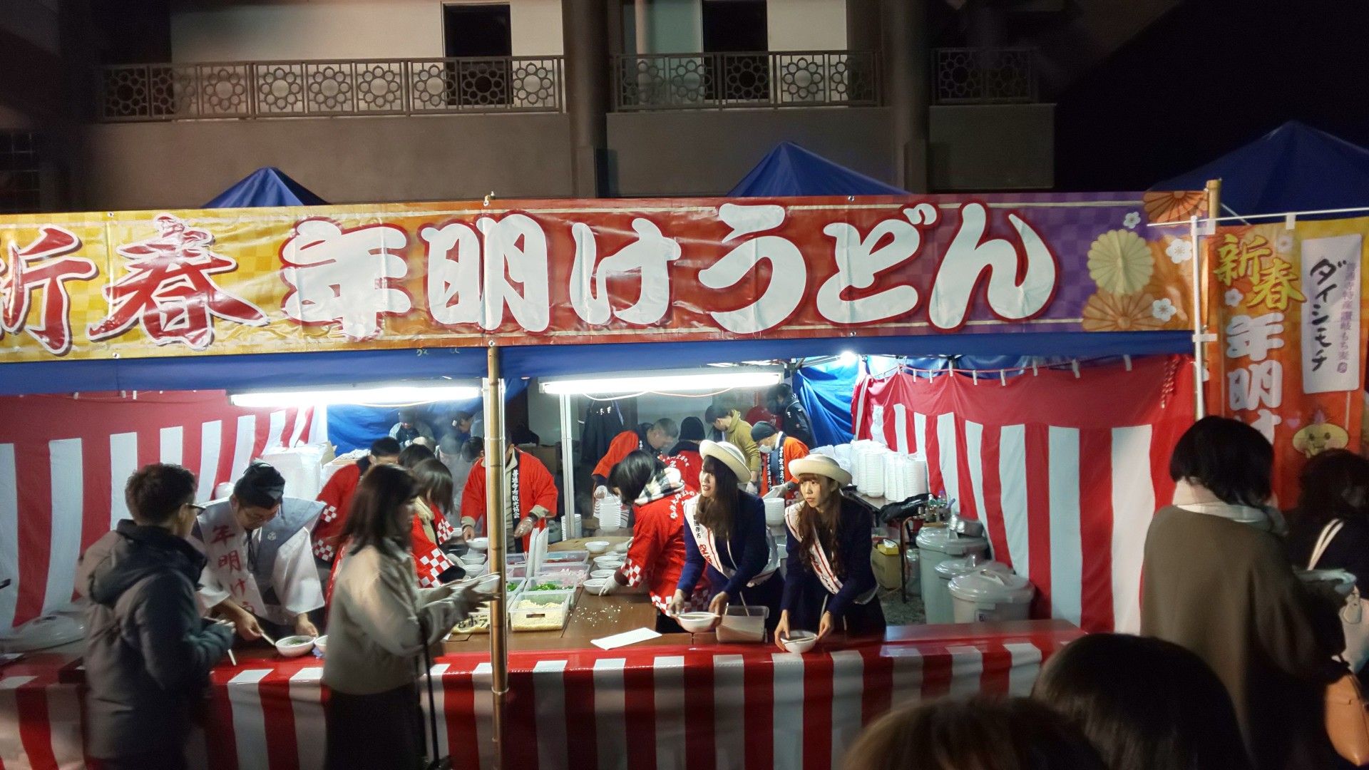 初詣に総本山善通寺へ。昔、半世紀ほど前、紅白を見終わってすぐ向かったら誰もいなかったことが、嘘のように年が変わる30分前には駐車場に入るための車の行列が。目的の年明けうどんの行列に11時40分に並ぶ。もう300人くらいあるかなぁ。