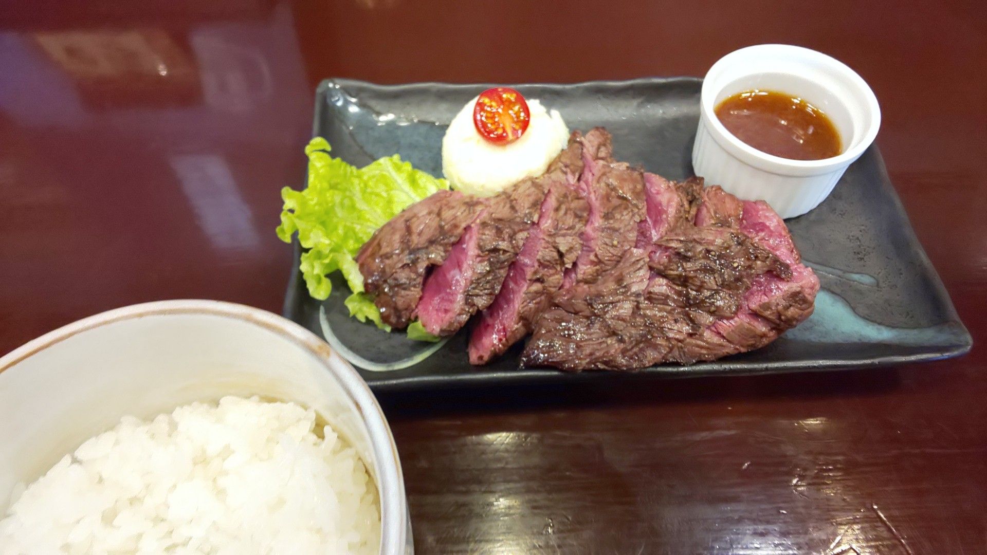 昨日の昼は、丸亀駅から数分、ぶつぎりたんちゃん。ランチメニュー5種の内、やわらかハラミステーキ定食。ちょっと遅めだったので180グラムはなくなり100グラム1000円。