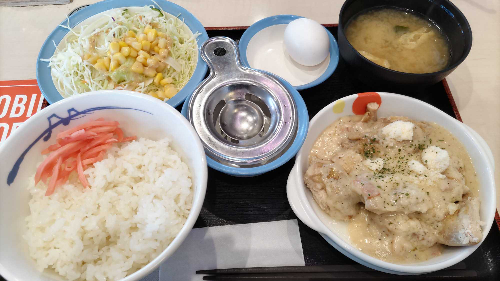 チキンがビーフだったら100点満点以上になる。前回のビーフストロガノフといいカルボナーラといい最近の松屋かなり攻めてるなぁ。ファミレスみたいな空間があればファミリー利用も増えると思うけど、それはそれでコストがかかるからな。