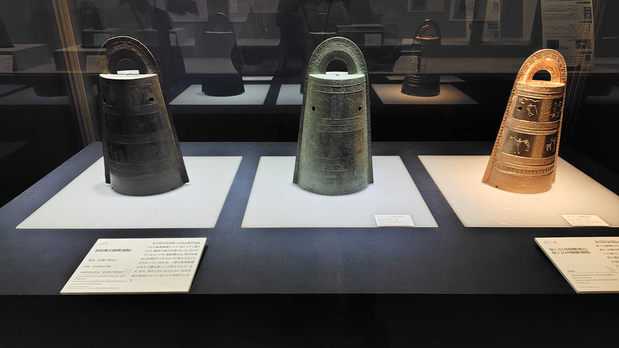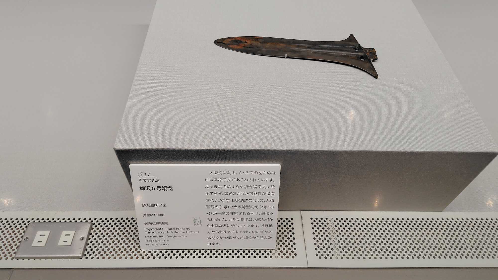重文は柳沢2号銅鐸・6号銅戈(中野市立博物館)、大岩山1号銅鐸・3号銅鐸・4号銅鐸(滋賀県立安土城考古博物館)が展示。