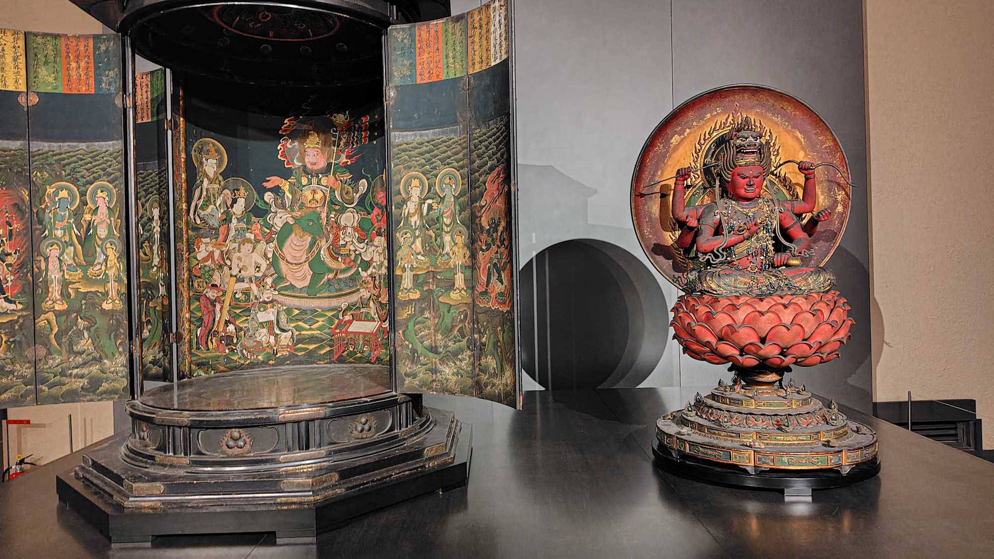 1階で木造阿弥陀如来坐像及び両脇侍立像(埼玉西光院)、木造毘沙門天立像 平安、木造十二神将立像。