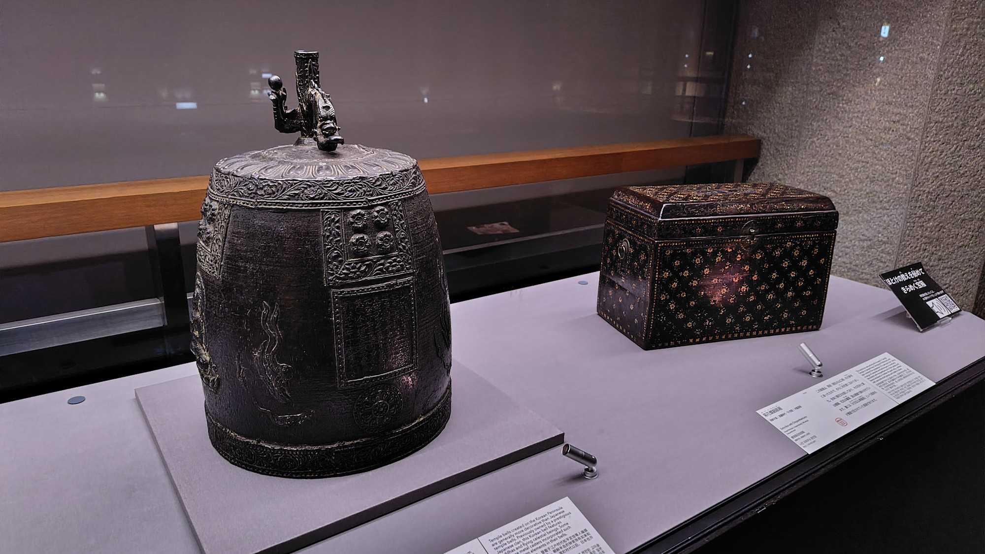 東洋館のてくてくコリア韓国特集で 菊花螺鈿経箱と梵鐘( 西新井薬師) 。