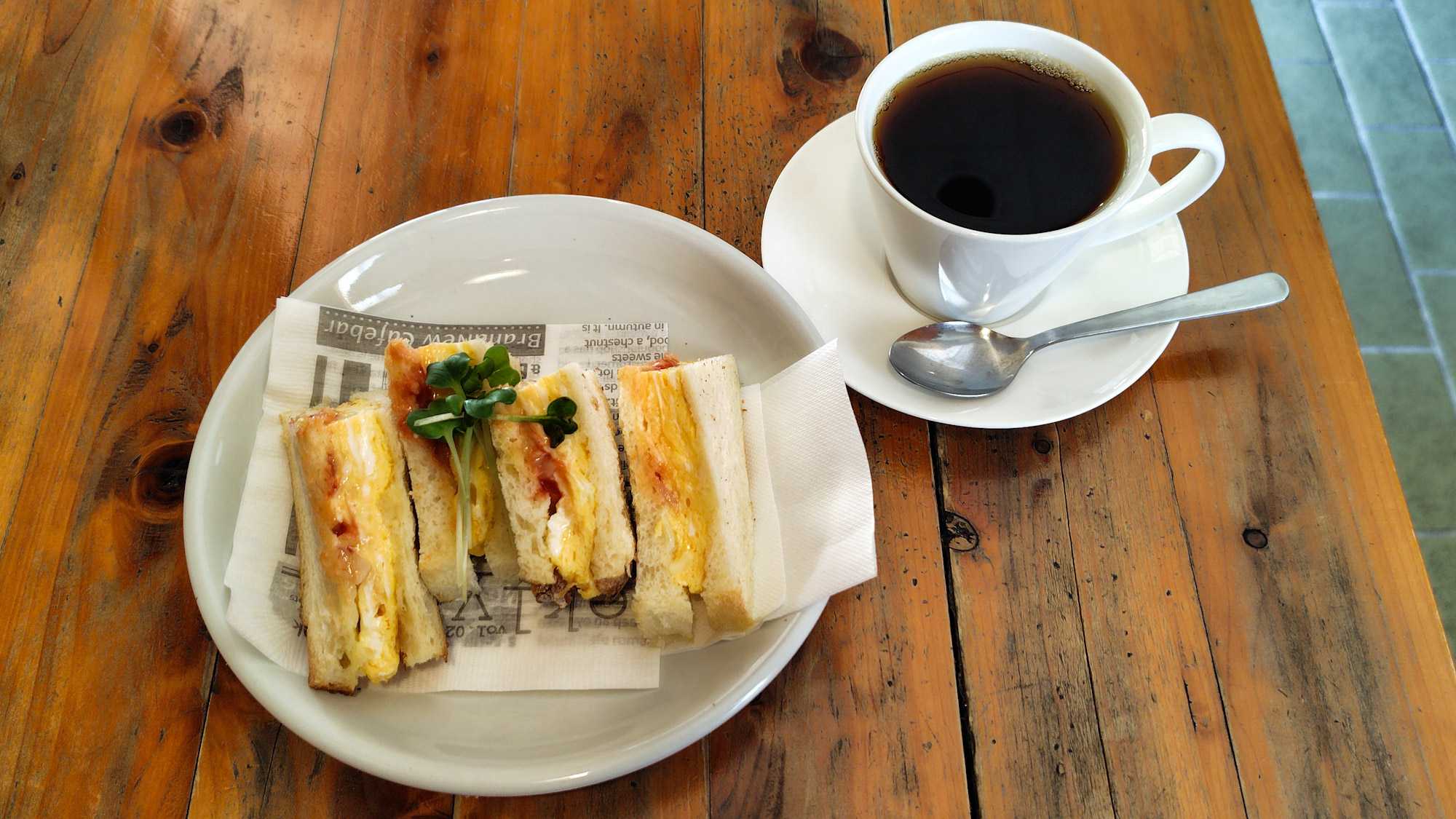 食べられるのは軽食類のみのカフェに、サンドウィッチ1000円を選択した。玉子がトロトロで美味しいけど、量が少ない。