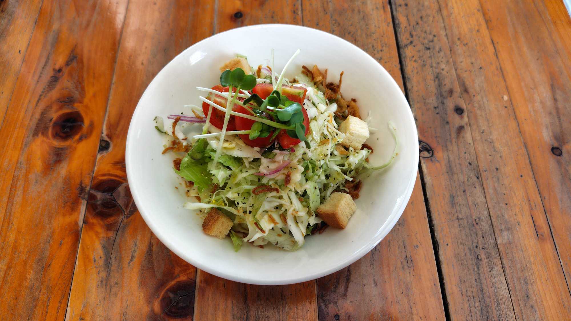最初にサラダが出てきた。飲み物サラダ付きの価格。最後にここでカレー食べたのは喉が痛くなった数年以上前、ショック療法で治るかと考えたが、その後すぐ入院した。