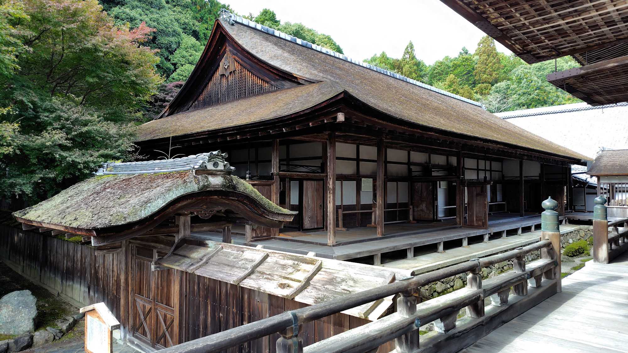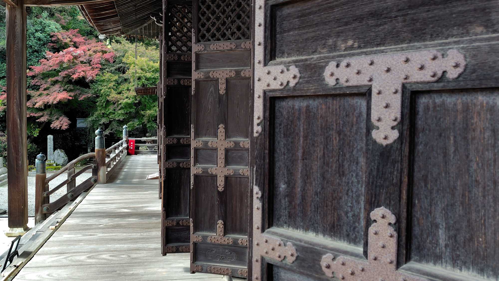 本堂は比叡山焼打ちで焼失。1739年再建。本尊が定朝様の阿弥陀様、焼打ちの後移ったとされる。
