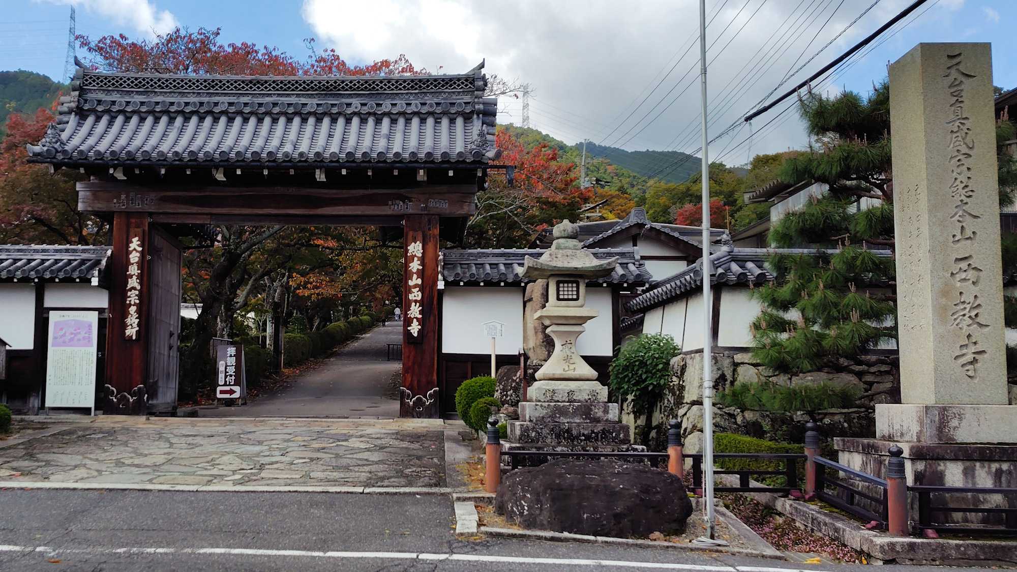 明智光秀ゆかりの寺で総門は坂本城からの移築といわれる。正式には天台真盛宗総本山 戒光山兼法勝寺西教寺と称す。