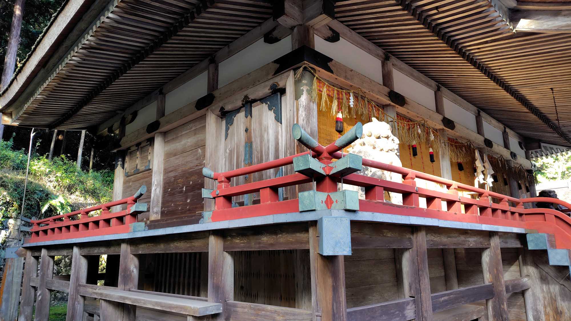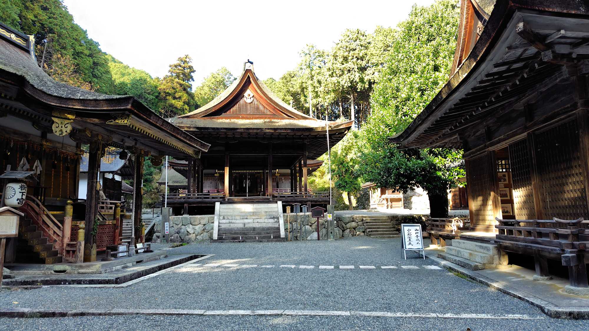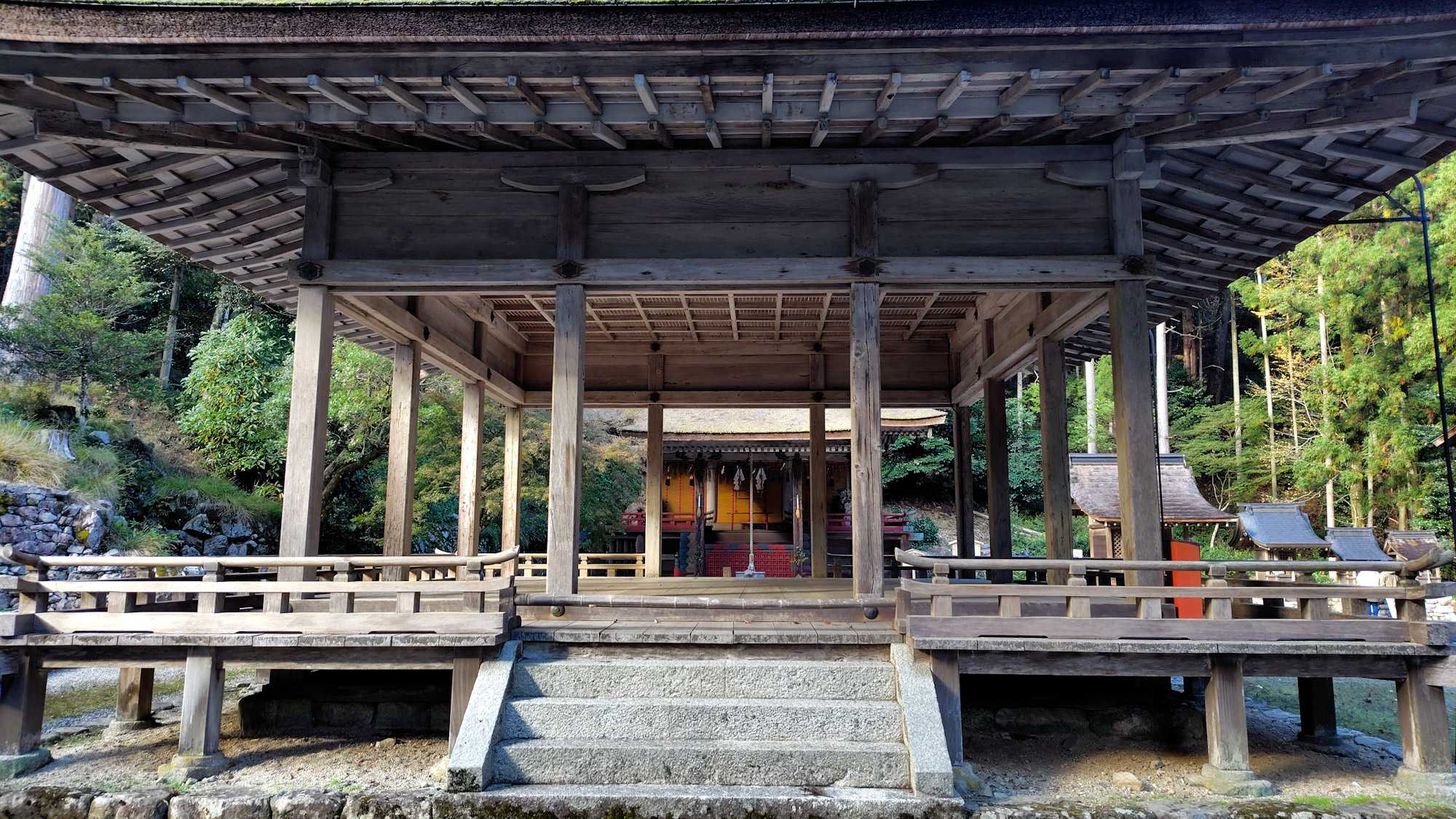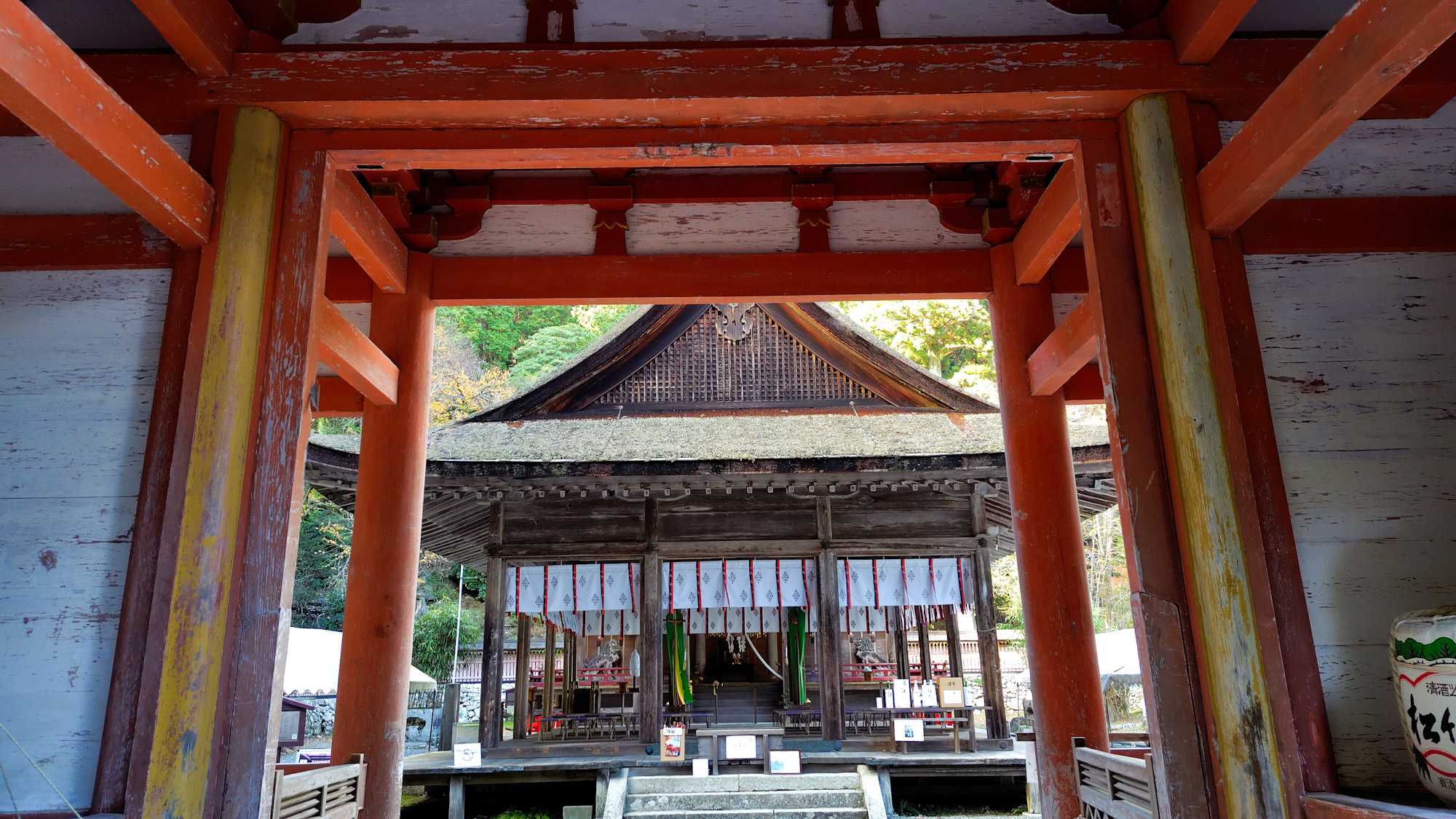 大宮橋から境内に入ると西本宮の摂社が並ぶ、重文の摂社 白山宮本殿及び拝殿。