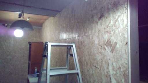 反対側の壁の上部も貼りました。残りはドアをつけてからになります。いつ届くかな~