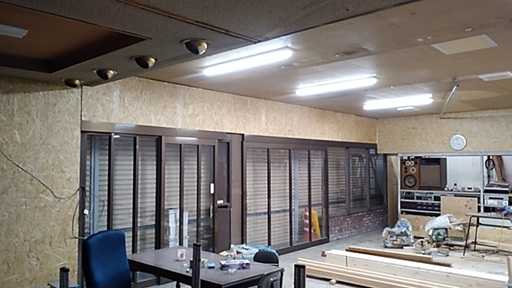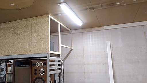 昨夜は久しぶりにビールを飲んだせいか気持ちよく眠れました。ベッドに入ると直ぐに眠くなり一度も目覚めずに午前6時前に目が覚めました。今日は軽トラックで荷物を運びたかったのですが雨なので断念。朝食後は弁当を作って実家へ。壁の工事で移動が必要になったスイッチを外すために個々のブレーカーを落として回路を確認。以前、電気屋さんが、ある程度回路を確認してくれたのですが以前ショールームだったときに使っていたスポットライトの回路が一部確認できていませんでした。今日チェックしたら幸い一つのブレーカーで切れることを確認しました。ということで、客電の確認。写真だと明るく見えますが実際にはそれほどでもありません。とはいえライブハウスくらいの明るさにはなります。それと新たに吊るしてもらったラックに2つか3つスポットライトをつければ客電としての明るさは十分です。回路も一つにできるので調光器の配線も簡単にできるでしょう。これで客電問題は解決しました。やった~それから壁工事の続き。とりあえず、昨日作った一階玄関は土禁にすることにして掃除機をかけて雑巾で拭いてから下駄箱を設置してみました。今日は午後2時からご新規さんのスタジオ見学があるので二階で弁当を食べて帰宅。ドラムの録音をしたいということでメンバー全員で来ましたがドラマーは以前録音に来たことのある方でした。スタジオ見学をしたら皆さん気に入ってくれて録音を引き受けることになりました。商売も頑張らないとね(^^)明日からは晴れるようなので材料を買いに行けます。OSB合板もそろそろ枚数をシッカリ確認して買う段階になりました。コンパネだと棚板などに流用できますがOSB合板はツルツルで使えず、余っても他に使い途がないですからね。水曜日は須坂まで劇団の公演を観にいく予定でした。代表の方から招待できると思うというメールがきたので伺えると思いますとお返事したのですが、まだ代表から連絡がありません。代表の方は忙しくなると僕の事を忘れるので今回も忘れているのかな。だとすれば、行かなくても返事がなかったのでと言い訳できますね。実家の工事も庭仕事もあるし温泉にも通い始めますからね(^^)明日もいい日になりますように!!