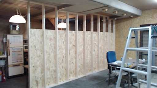 昨夜はスタジオをお任せしたのが午後10時過ぎ。母屋に戻って寝ましたが午前3時過ぎに目が覚めたら眠くなりません。本を読んでもテレビを観ても音楽を聴いてもダメ。ということで午前5時過ぎに着替えてスタジオに移動して昨日食べ損ねた菓子パンとアップルパイ、紙パックの珈琲で朝食を済ませて午前7時過ぎに実家へ。私室のレコーダーの録画を確認したりリタイトルしたりで午前9時を過ぎたところで近所の自動車屋に行って11月28日にエアウェーブの車検の予約をしてきました。車検のついでにスタッドレスタイヤに交換してもらうので、それまでにドライブに行かないと(^^)それから作業着に着替えて壁工事の続き。ステージ両脇の壁の骨組みは廃材や余りの野縁を利用しました。一枚モノなら簡単に貼れるのですが残りの枚数を考えて端材をつないで貼ったりで時間がかかりました。それでも廃材や端材を有効利用できたので気分は最高です。午後1時過ぎにさすがに空腹を感じたので公共料金を支払いがてらコンビニで弁当を買って帰宅して昼食。と、電気屋さんからメールでこれから行ってもいいかというので慌てて食べて一階のシャッターを開けました。社長さんが現調に来てくれましたが工事が進んでいて驚いていました。我が家を担当してくれるはずの社員が長野大学の工事現場の職長になってしまって動きがとれなくなったことから何時になるかわからないけど善処してくれるとのこと。また、換気扇のスイッチをつけてくれました。これで塗装ができます。帰ってから壁工事の続き。遂にOSB合板を使い切りました。一部は足りないので端材をつぎあわせました。残った材料をとりあえずステージの上に置いて掃き掃除。で、床の補修の準備。金槌とノミでひび割れた場所を平らにできるまで砕きました。午後6時を過ぎたので今日の工事は終了。明神館はもし短縮営業だと空振りになってしまって嫌なので御牧の湯に行きました。今日は銭湯感覚で湯舟に浸かってから頭と体を洗って髭をそって出てきました。帰宅してビール。今夜の貸しスタジオはお任せできます。明日は午前中から録音ですが操作は利用者にお任せすることにしています。明日も工事できるかな(^^)明日もいい日になりますように!!