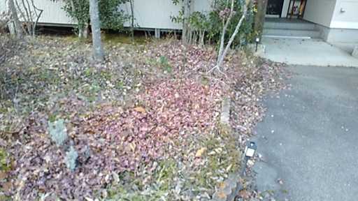昨夜も秋の夜長を堪能して寝たのが午前1時過ぎ。グッスリ眠れて今朝は目が覚めたのが午前8時半。スタジオに移動して朝食後は貸しスタジオに備えてラウンジで待機。マッサージチェアで体をほぐしながら録画した番組を視聴。午前11時前に利用者が到着したので僕は普段着の上にヤッケと作業ズボンを重ね着して庭仕事。枯れ枝を集めたり枯れ草を刈り取ってコスモスの種は周りに撒いたりバラの誘引をしたり。それから落ち葉の移動をしました。木の葉は春に芽吹くと光合成で木に栄養を補給し、役目が終わると自らの栄養分を木に与えます。それが紅葉です。それから地面に落ちて土に還り木の栄養になるのです。そんな健気な存在を今まではゴミとして落ち葉掃除といっていましたが反省です。散った葉がアスファルトに落ちて土になっても木の栄養になることができません。以前は集めてコンポストにいれていましたが近年はアスファルトに落ちた葉は土の上に移動させます。それが、僕なりの落ち葉に対する誠意です(^^)こうして綺麗にしても、次の日にはまた風に舞った落ち葉が溜まることになりますが雪で舞わなくなるまで移動を続けたいと思います。上記の写真はガラケーで撮りました。次に紹介するレッドカーペットも撮ったのですが色合いがひどすぎるのでスマホで撮りなおしました。実際のサイズよりも縮小したのですが結構大きいですね。真ん中に写っている太い幹が紅葉です。ドウダンツツジの赤と相まって素敵な道になっています。歩くとフワフワして気持ちがいいんですよ。まさに僕には無縁のレッドカーペットです(^^)ここは土がやせているので、これからはここに落ち葉を移動させてあげようと思います。結構な手間ですが樹木や落ち葉のためなので頑張れます。今日、スタジオに来た方も終わってから庭で立ち話をしたら共感してくれました。長年の付き合いになりますが気の合う人と出会えて幸せです。スタジオをやっていて本当によかったと思います(^^)スタジオの裏庭です。春から夏にかけては雑草を刈るだけの厄介な存在ですが秋になると素敵な庭らしくなってくれるので頑張れます(^^)ラジオが午後1時を告げたので本日は終了。いやあ、庭仕事は楽しいですね。気象情報によると、そろそろ外水道を止めないと凍結の危険があります。実家の工事は一旦お休みして外水道を使う庭仕事を終わらせようと思います。