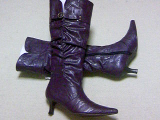 今日は近くのショッピングセンターに気分転換に買い物に行ってきましたもうすぐ3ヶ月になる子供だけ連れてショッピングめちゃめちゃ楽しかったです好きな服を手にとって鏡に合わせてみる喜びがハンパじゃなかったです子供もカートに乗ってニコニコだったし私も服を見れてニコニコ最近楽天の安いお店の服ばっかり見ていたせいかなかなかリアルでお店に行っても安く見えずためらってばかりになってしまいましたしばらく服を見ていたらマネキンの下にブーツ発見値札に50%OFFってついてる好みだったからとりあえず履いてみることにしました履いてビックリ!!すっごく足にフィットして履きやすい!!このブーツは絶対私のために作られたんだッ買うしかないとアホみたいな錯覚におちいりましたが・・・。悩んで悩んで買いました最近買い物で失敗多かったし、旦那の了解も得たし、何より50%OFFだしッ悩んだ理由は色がパープルだったからです相変わらず写真の撮り方ヘタでブラックに見えるけどパープルなんです濃いパープルって感じでカッコいぃです私久しぶりに本気で一目ぼれでした。ジャケットとかでパープルって着てる人結構いるけれど、ブーツでパープルってあんまりいないから見慣れなくて抵抗あったんですブラックやブラウンやキャメルなら履いてる人たくさんいるし見慣れているんだけど・・・。みんなと同じ色じゃなくても、自分がいいって思えばいっかみんなと違うものってなんか嬉しいです私の周りにたまたまいないだけなのかな・・?パープルのブーツを履いた人を見たら嬉しくてにやけちゃいそうですあと近所のお店が閉店セールをやっていたので、得意のワゴンセールで服ゲット!!写り悪くてかわいく見えない全部980円でした赤のチェックのシャツにフードがついてるという珍しいもの発見したので買っちゃいましたなんかかわいくって惹かれたんですシャツにフードつけるなんていい発想だなぁなんて関心してしまいました帰りに子供にミルク吐かれて、着ていたジャケットも服もゲロまみれになったけれど、今日はとてもいい買い物ができて満足ですまたたくさんいい服にめぐり合えますようにー