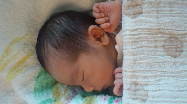 起きているときも、きょろきょろと周りを見回してにこっとする、