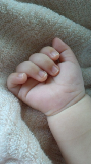 生まれた直後あまりに爪が伸びていて、顔じゅうが引っかき傷になりました。