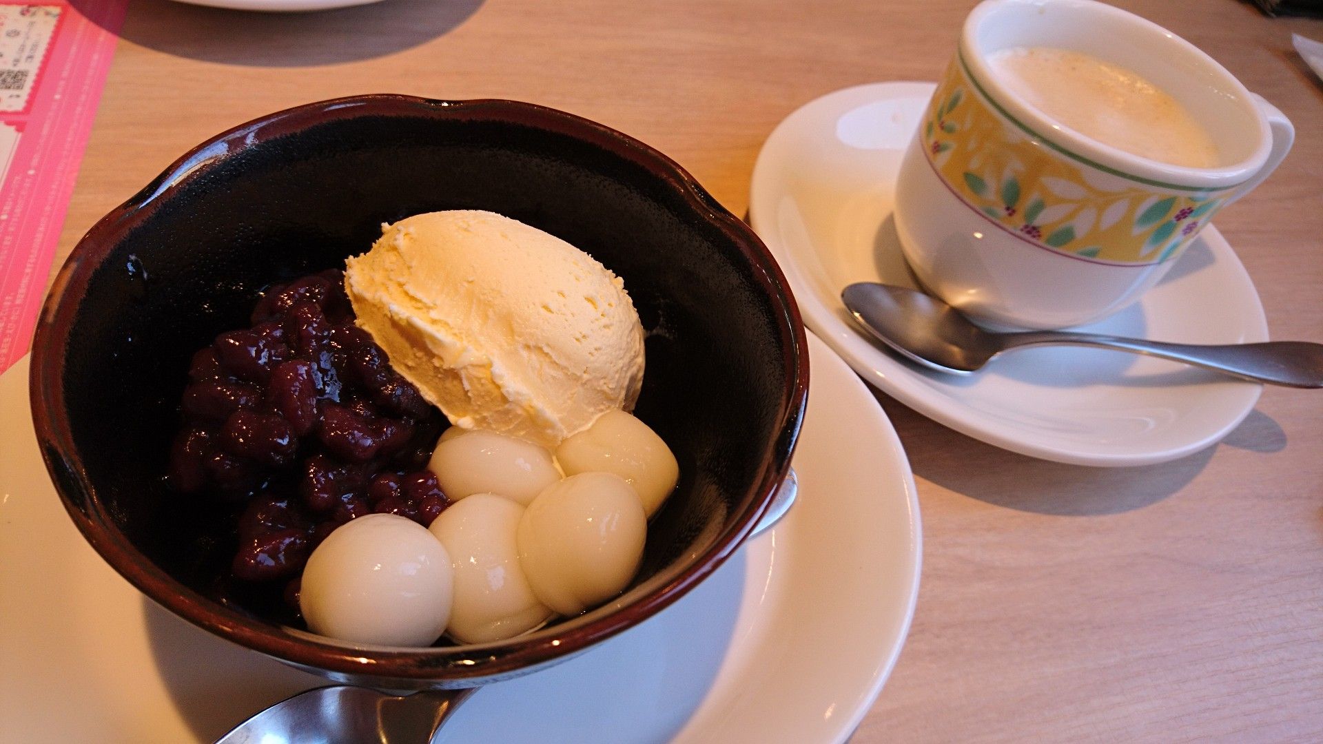 抹茶クリームあんみつ、自家製フレンチトースト、ドリンクバー