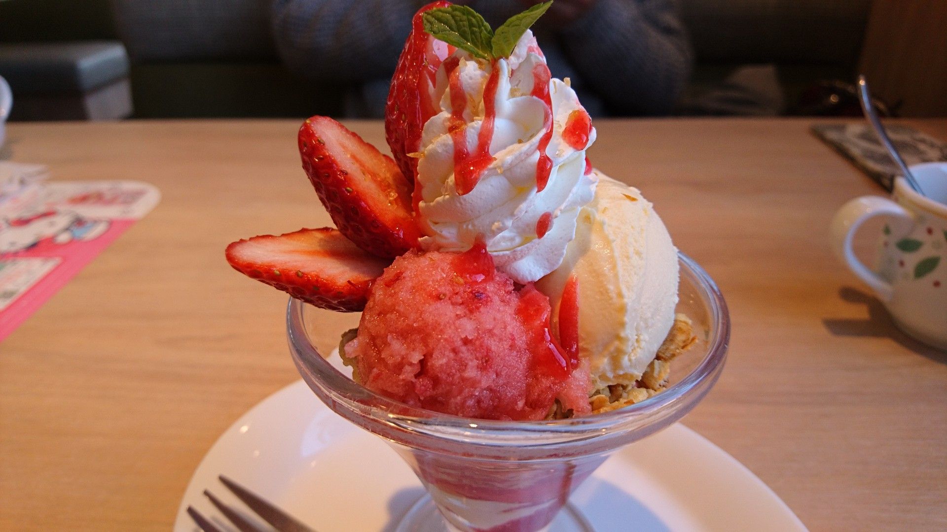 とちおとめのミニパルフェ         白玉あずき、ドリンクバー