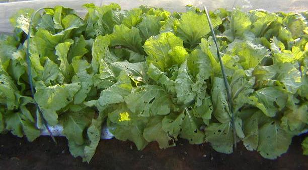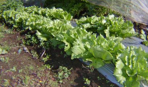 レタスを定植しました。レタスは虫はほとんど付きませんので、寒冷紗(網)はやりません。レタスは寒さに弱く、いつも一番初めに霜にやられて駄目になるので,あまり多く作りませんでした。しかし今度の品種は、トンネルを掛ければ千葉なら1~2月まで畑に置けると言うのでで多めに苗を作ってみました。う~ん どうでしょうね 種屋さん本当?早めに植えたレタスは結球し始めました。私は、ホームセンターでは、早くから苗が出回るので、早取りの苗を作るのが面倒な時、少しの量なら買っちゃいます。水菜も苗を買ったのは、だいぶ大きくなり、来週ぐらいには食べられそうです。早いですね。今日見たら、バナナから透明でドロッとした液が出ていました。なんだか不気味です。 何かの前兆かな?今年は千葉では天候に恵まれています。どうやら秋~冬野菜は豊作になりそうです。