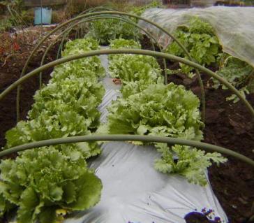 先日、日記に載せたレタスにビニールトンネルを被せました。同じ列に並んでいる水菜と春菊も一緒にかぶせておきました。このビニールはもう2回使っていて、3回目のお役目なので結構汚れています。新品よりは多少日光を遮りますが、まあ大丈夫だと思います。1回使って捨てるのでは、勿体ないですからね。これで1月下旬~2月上旬まで持つらしいのですが、良く分かりません。タマネギの定植は来週にしました。明日できれば、定植場所を耕しておきたいと思います。