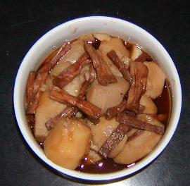 先日干して出来上がった八つ頭の、ズイキをイモと一緒に煮て食べました。口当たりが面白くて、周りがシャキシャキしていて内側がヌルッとした感じです。お気に入りの人は、歯ごたえが好きなようですね。大根ももうすぐ収穫です。向かって右の写真の4本だけ早生を蒔きました。左のに比べて葉が少し小さいです。この4本は結構太くなってます。あとのは、葉は立派ですが太さは早生の半分くらいです。ですが、これは寒さに一番強そうなのを選んだので、冬長く畑において置けると思います。これは12本くらい蒔きました。私は大根おろしが大好きなのですが、お店で買うやつは味が薄いのが多くて、今ひとつ、ものたりません。やはり自分で作ったものが一番ですね~