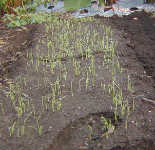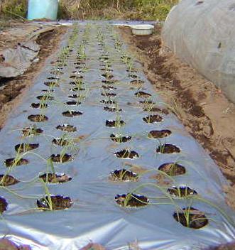 今年は初めて普通のタマネギと,子球を植えるタマネギセットの両方を遣ってます。上の写真はタマネギセットの方です。タマネギセットは植えるのが遅れた為、シルバーマルチにしました。こうすると、長日刺激をよくうけ、葉温が高まり成長が早いそうです。葉はだいぶ大きくなりましたが、球はまだ膨らんでません。これからだと思うんですが....これは9月下旬に種蒔きした、晩生のタマネギです。11月の下旬に定植するつもりです。晩生のタマネギは、マルチはいらないらしいのですが、私はシルバーマルチを遣ってみようと思ってます。もしかしたら成長が良すぎて、分球やトウ立ちが多くなってしまうかもしれません。こんな感じに、いろいろ迷いながら遣るのもまた楽しいものです。