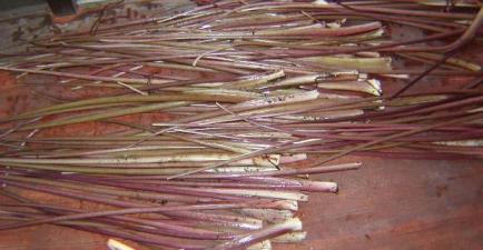 今年初めて栽培したものに、セレベスと言う物があります。写真は上が八つ頭で、下がセレベスの茎です。今春、種屋さんに行った時セレベスなるものを見つけて「なにこれ?」って聞いたら「これが一番美味しいんだよ。みんな知らないから作らないけど」などと言われたので、「これは、遣るしかないな」 と騙されてためしに1袋買ってみました。そしてその時、茎も食べられると言っていたのですが、ネットで見てもあまり食べられるって載ってないんですよ~どうなのかな~八つ頭も昨日、芋茎を収穫して、乾かしてます。2~3日したら皮を剥いて干して、芋がらにする予定でいます。でも、この作業結構大変で、手は灰汁で真っ黒に汚れるんです。しかし、完成すれば1年以上も持つので、沢山作っても全部使えちゃいます。出来たものは、主に煮物で食べますね。芋と一緒に煮ると美味しいです。お味噌汁の具や、酢の物でも食べれます。素朴な味ですね。食物繊維なので女性には良いかも知れませんよ。今日は一日中雨で、結局ソラマメの準備が出来ませんでした。もう休みの予定がいっぱいなので、ソラマメは今年はポット蒔きにしようと思います。定植までには、何とか畑を整理したいと思います。