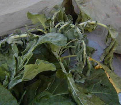 早生の白菜とキャベツが結球し始めました。しか~し、白菜の中にやはり虫が少し隠れていました。白菜は早い内に虫を退治しておかないと、後から取りづらくなってしまいます。その点では、沢山虫のつくキャベツより厄介でしょう。たいがい、1割くらいは駄目になってしまうようです。キャベツの方が虫が付きますが、退治しやすいですね。どちらもあと1ヶ月程度で収穫できると思います。虫退治をしていたら、ヨトウムシが真っ白になって死んでいました。何か他の虫に遣られたのかな~?たまに思うのですが、カマキリ等を捕まえて、網の中に入れておくと効果がありそうですよね~こんなことを考えるのは私だけでしょうか(笑)