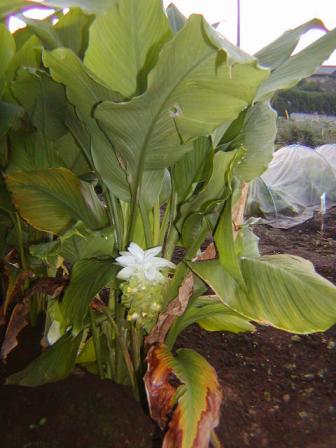 これ見たことありますか?私ははじめて見ました。絶対とは言い切れませんが、多分ウコン(ターメリック)の花だと思います。間違っていたら教えてくださいね。今朝、日記のネタを探していたら、近所の人の畑のウコンらしきものに、花が咲いていました。それにしても、結構見事な花じゃありませんか。ウコンか~ 観葉植物のつもりで育てても良いかも!でも、食べるのに苦労しそうな気がしますね~