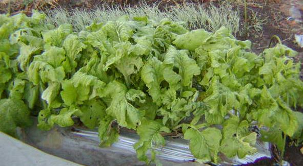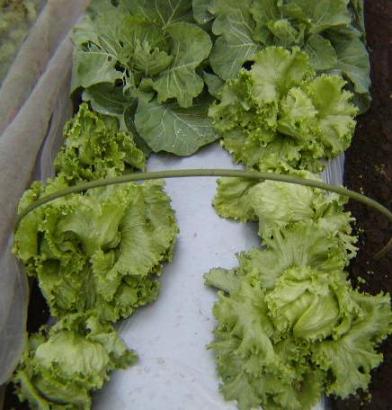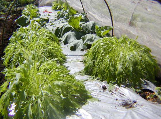 昨日の朝は寒かったですね~畑に行ったら、やっぱり春菊に霜が降りておりました。レタスと同じ畝の余った所にも春菊を植えてあり、こちらはビニールトンネルをかけているので、覗いてみました。やはりこちらは大丈夫のようです。1~2月の本格的な寒波が来るまでは何とか持つのかな。先にトンネルを掛けてない春菊を食べるべきでしょうね。