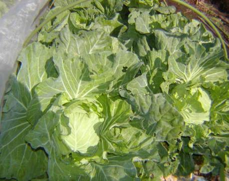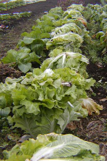 晩生のレタスがそろそろ結球し始めました。来週にも、ビニールトンネルを掛けるつもりでいます。この品種は寒さに強く、そうすれば2月初め頃まで畑に置いとけるそうです。写真では分かりづらいですが、早く蒔いた菜花がやっと蕾を持ち始めました。どうやら、少しは秋のうちに菜花が食べられそうですね。収穫です。春菊、大根、水菜、ブロッコリー、キャベツ、ネギですね。ブロッコリーとキャベツはこの秋の初収穫です。水菜は巨大化しています(笑)糠漬けにして食べるつもりです。