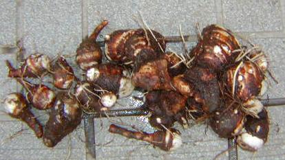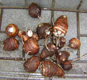 おおちゃく播きした、水菜が巨大化しつつあります。今でも、ブロッコリーと同じくらいの高さに成長しています。今年は気温が高いせいか、伸びるのが早そうです。このままいくと、トウが立ったりするのでしょうか?冬の間、食べるつもりなのでちょっと心配です。先日掘った里芋、セレベス、八つ頭、の半分くらいを来年のために土に埋めて、保存しておきました。おかげで今日は腰痛です。来年は、里芋の親芋も、ネイモとしてホワイトアスパラのように軟化栽培にチャレンジしようと思います。まだ栽培方法は良くは分かりませんが、どうせ里芋の親芋は捨ててしまっていたので、だめもとで来年やってみます。これは、親芋を穴を掘った中で、光をいれずに栽培して、茎を収穫する遣り方で、千葉では一部で昔から遣られています。今日は穴掘りでハードな一日でした。明日の腰痛が心配です。