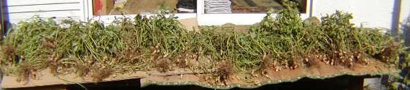 ピーナッツを収穫しました。沢山蒔いたので、収穫したのは全体の10/1位の量です。茹でピーナッツで食べましたが、ちょっと、あとをひく味ですよ。茹でピーナッツはお店ではなかなか売ってませんから、こんな物を楽しむのも家庭菜園の面白さではないでしょうか。春菊も発芽しました。春菊は発芽率が悪いのですが、今年はよく出た方ですね。しかし、春菊は寒さに弱いので、霜で終わりになるのが困り物です。お鍋の季節に、もっと食べたいのですが、上手くいきません。今年はトンネルをかければ少しは持つかな~ っと思い少し試すつもりです。今年は、秋~冬野菜は良い陽気に恵まれそうです。今年の野菜の値段もそんなに高くはならずに済むでしょうね。